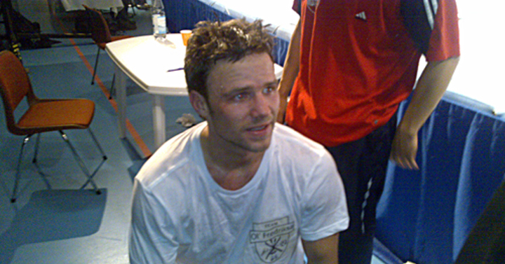 Runde 6 (siste runde) - Begge utøvere har skrudd opp tempoet og satser på å ha mest krefter igjen mot slutten av kampen. Andreas slår hjelmen av Frederic når det gjenstår 30sec.