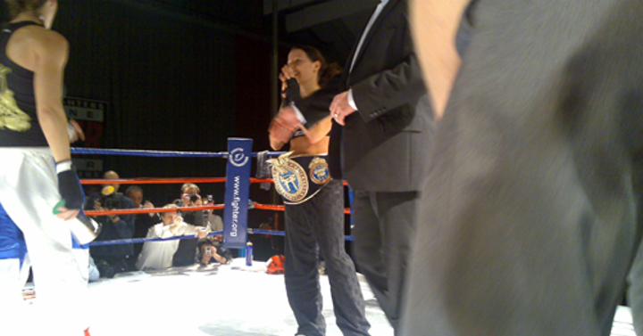Den Franske jenta måtte i gulvet i det gonggongen gikk for 5te runde, hun hadde problemer med å reise seg og måtte ta telling.