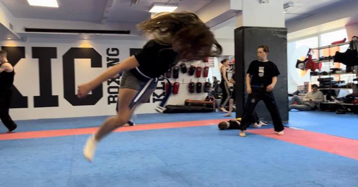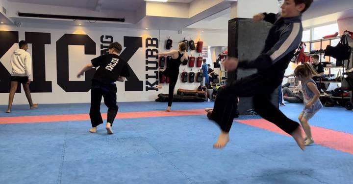 Vi begynte dagen med to timer tricking trening. Kim Svensson holdt først en oppvisning der han viste frem enkle og avanserte tricks som barna ville få lære seg i løpet av økten. Barna fikk også spørre om å se forskjellige tricks og han viste dem det de ville se. I løpet av økten lærte gruppen seg hvordan de skulle gjøre grunnleggende bevegelser som Butterfly- kick og tronado-kick. De satte også sammen kombinasjoner som la grunnlaget for arbeidet i økt 2. Det var mye smil og latter, men også konsentrasjon og prestasjon.