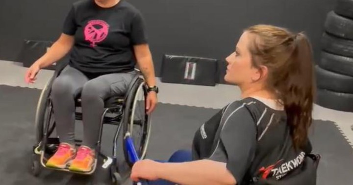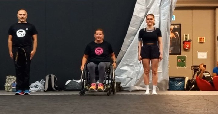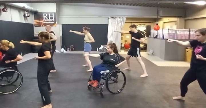 Av bildene kan dere se at vi på dette seminaret hadde to utøvere som bruker rullestol. Akademiet er flinke med å tilby forskjellige treningsalternativer i deres klubb, og denne gangen ønsket de å belyse at Kickboxing/Musikal Forms også er et godt alternativ for Paraidrett utøvere.